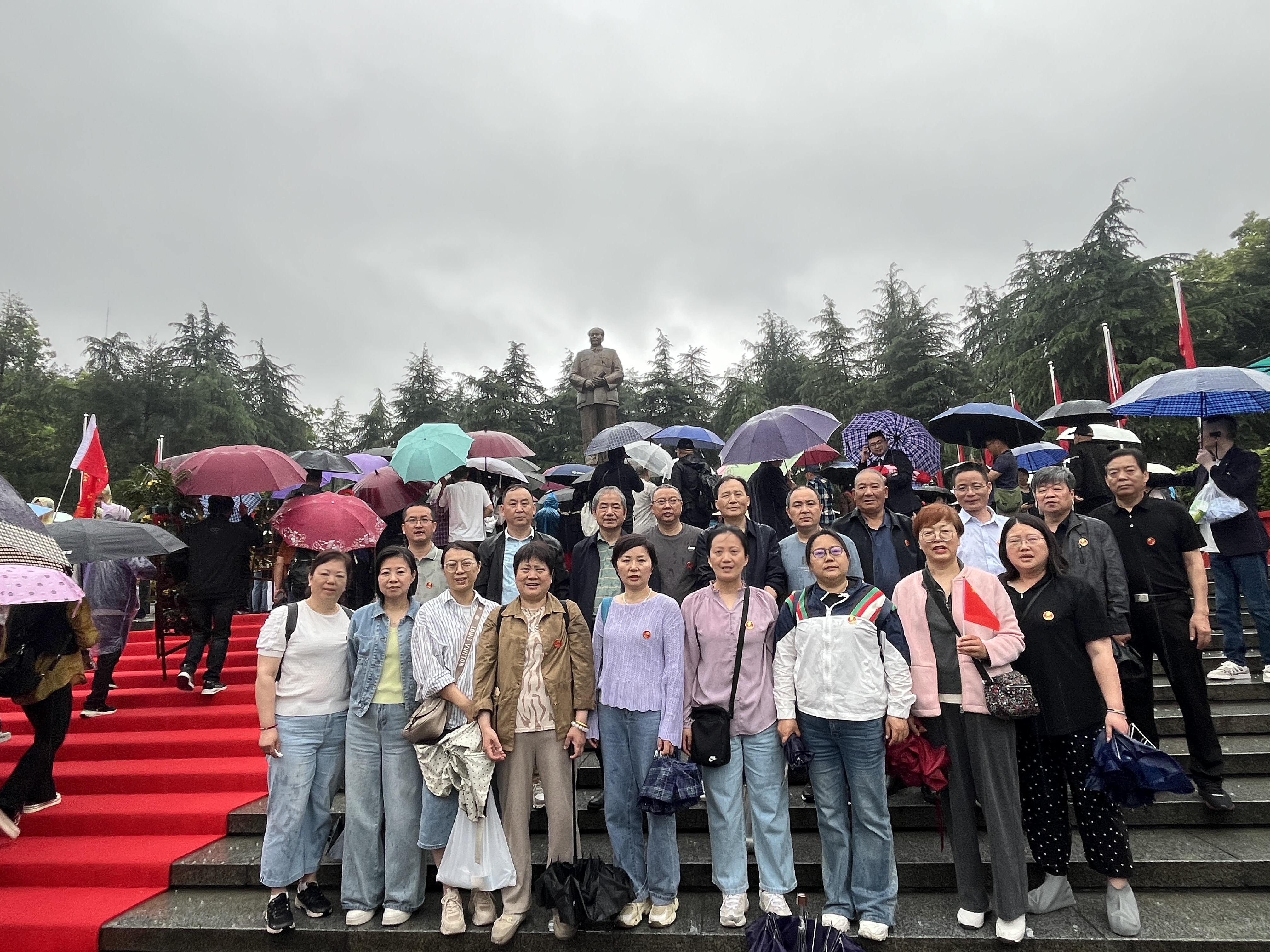 次日,盡管大雨傾盆,卻澆不滅黨員們的熱情。在韶山毛澤東銅像廣場(chǎng),全體黨員莊嚴(yán)肅立,向毛澤東銅像敬獻(xiàn)花籃,深深三鞠躬,表達(dá)對(duì)偉人的無(wú)限崇敬與追思。隨后,大家參觀了毛澤東故居。這座始建于1878年的土木結(jié)構(gòu)農(nóng)舍,是毛澤東誕生和度過(guò)少年時(shí)光的地方 ,屋內(nèi)陳列的舊物,無(wú)聲訴說(shuō)著偉人的成長(zhǎng)經(jīng)歷,激勵(lì)著黨員們不忘初心、艱苦奮斗。滴水洞曾是毛澤東回鄉(xiāng)居住之所,這里靜謐清幽,黨員們?cè)诖烁惺軅ト说募覈?guó)情懷。